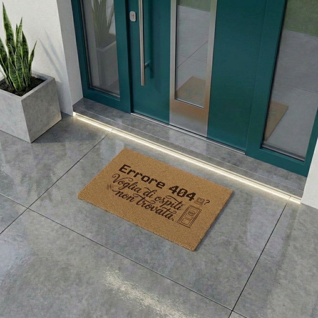 Perfetto per chi vive davanti a uno schermo o per chi vorrebbe poter premere CTRL+ALT+CANC sulle visite a sorpresa, questo tappeto avvisa i visitatori che la risorsa richiesta (la tua ospitalità) al momento non è disponibile. È un modo "geek", ironico e inequivocabile per gestire il traffico in entrata senza dover aprire ticket di assistenza.
